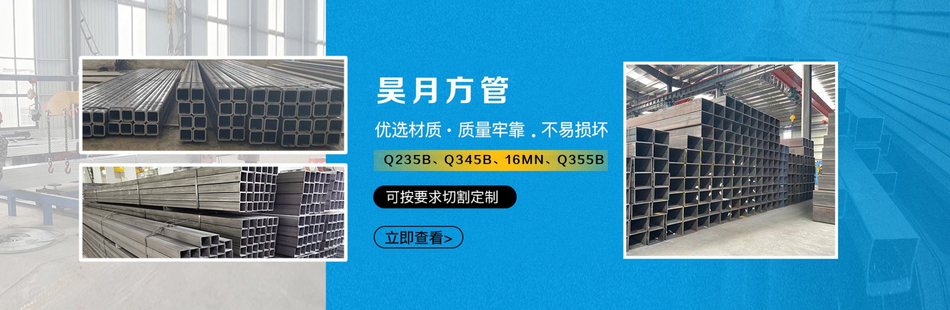山東昊月金屬制品有限公司是一家從事Q235B方管,Q345B方管,16mn方管,Q355B方管的多元化的企業,公司并為客戶進行檢測、運輸等一系列服務。 山東昊月金屬制品有限公司,秉承"真誠信用,以用戶增值為自身價值體現"的經營理念,不斷完善自身的經營管理機構,提高服務深度和精度,追求與客戶長遠的、穩定的、互動的合作關系,產品廣泛銷售至全國各地及國內外部分項目中。 公司本著平等互利、誠信合作的原則,為客戶提供質優價廉的鋼材,歡迎廣大客戶來電、來函垂詢,真誠的與各位合作伙伴共謀發展...